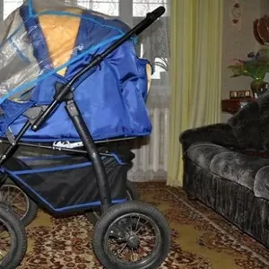 Продаю детскую коляску-трансформер фирмы Bogus, в отличном состоянии. Коляска имеет хорошую амортизацию, проходимость за счет больших надувных колес. Легко превращается из зимней в летнюю. Снизу коляски - удобное место для покупок. В комплекте - дождевик и сумка для мамы. Яркая, практичная и недорогая коляска.