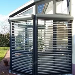 Солнцезащитные системы, которые устанавливаются в световой проем с внешней стороны фасада здания. Основным достоинством внешних жалюзи является то, что отражение световых и тепловых потоков происходит еще до их проникновения в помещение. Такой способ создания микроклимата является более оптимальным по сравнению с внутренними жалюзи, поскольку позволяет снизить расходы на кондиционирование.