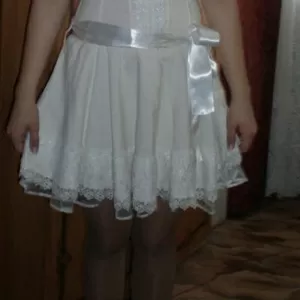 Продам платье нарядное (можно на второй день свадьбы или на выпускной) модель "Лолита", белое с редкими маленькими цветочками, есть корсет, чуть ниже колена, размер 46-48, в идеальном состоянии, б/у 1 вечер..
